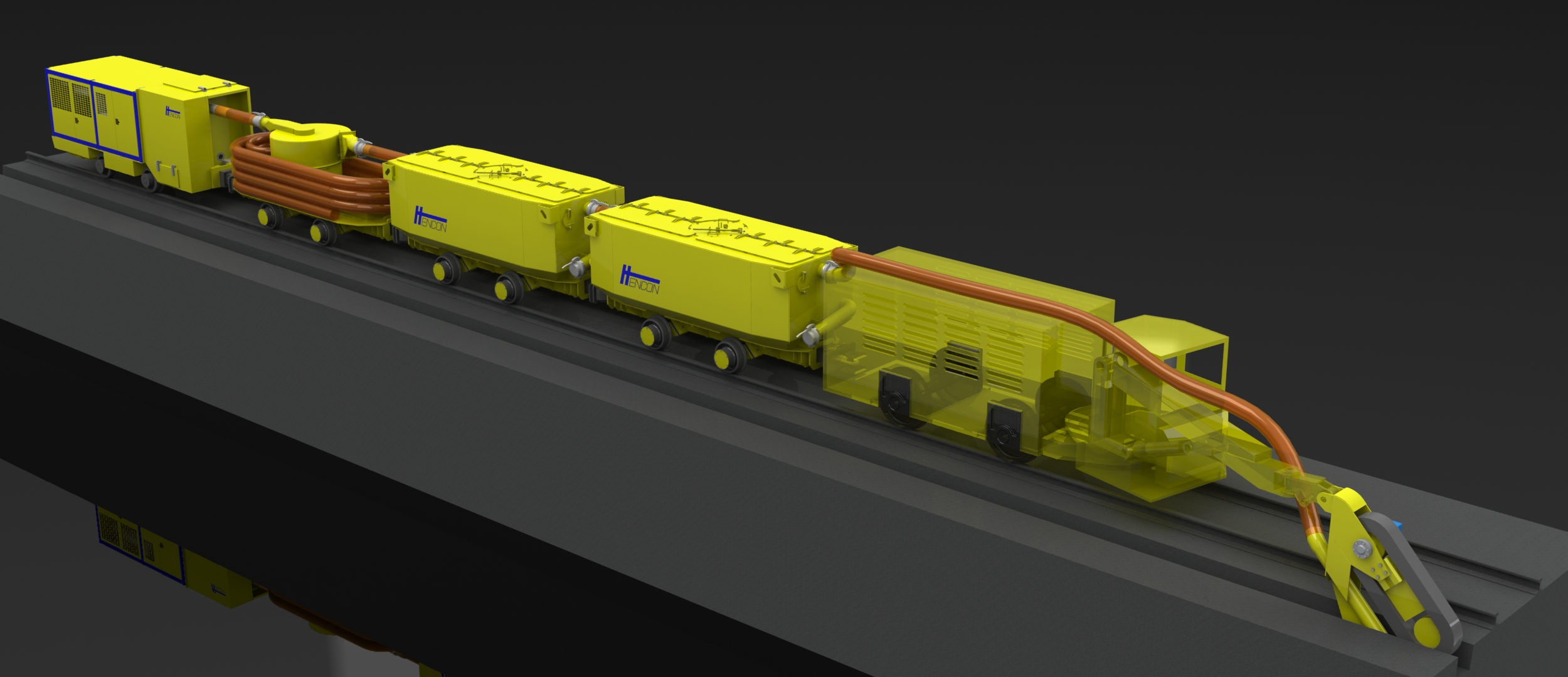 A rail mounted vacuum unit like the HVT-ESV_RAIL allows the use of existing mine rail infrastructure, including locomotives to move the vacuum unit around the mine.